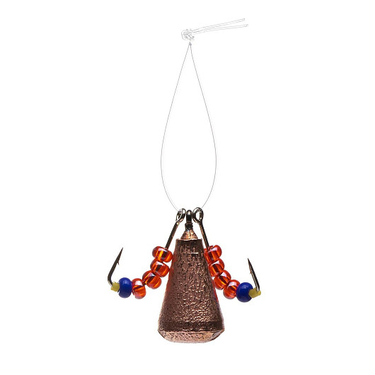 Приманка для зимней ловли. Имеет металлическое тело и 2 крючка. Особенности: • 2 крючка, свободно закрепленные на пластиковом хомуте; • Цветные подвижные бусы на крючках. Характеристики: Бренд: Helios Вес, гр.: 3,15 Длина тела, см.: 1 Вид ловли: зимняя Вид крючка: два крючка с бусинами Цвет: бронза
