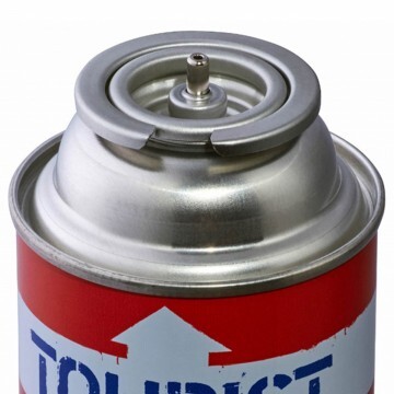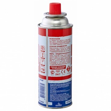 Газовый баллон для портативных газовых приборов с клапаном резьбового типа. Изготовлен в Южной Корее.