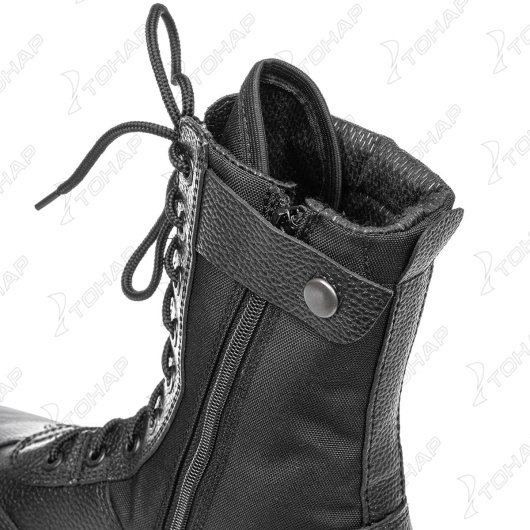 Ботинки выполнены из натуральной кожи 'Хром' и водоотталкивающей ткани, с микропористым полиуретановым покрытием. Обладает мембранным эффектом. Легко поддается аэрозольной обработке. Подошва ТЭП - износостойкая, с высокими показателями грунтозацепляемости. Способ крепления подошвы - клеевой бортопрошивной. Для повышения прочности обуви и защиты ног от случайных ударов в носовой и пяточной части вклеены усиливающие элементы. Летняя модификация. При изготовлении применяются высокопрочные нитки Guterman (Германия). Характеристики: * Назначение: для спецслужб, активного отдыха и туризма. * Верх - хромовая кожа и ткань Oxford с WR пропиткой. * Подклад - Cambrelle. * Основная стелька - кожкартон. * Вкладная стелька - Cambrelle и кожкартон. * Высота - 22 см. * Вес - 1,2 кг. * Комфортная температура эксплуатации от +10° до +25°С. * Размер :41