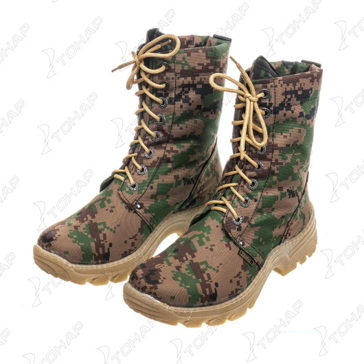 Ботинки «Турист» (камуфляж) Назначение: для активного отдыха, туризма. Обувь выполнена из водоотталкивающей ткани, с микропористым полиуретановым покрытием. Обладает мембранным эффектом. Легко поддается аэрозольной обработке. Для повышения прочности обуви и защиты ног от случайных ударов в носовой и пяточной части вклеены усиливающие элементы. Летняя модификация. При изготовлении применяются высокопрочные нитки Guterman (Германия). Комфортная температура эксплуатации от 0° до +25°С Наружный слой обуви: Спецткань с водоотталкивающей пропиткой Подошва: Термоэластопласт - износостойкая(ТЭП) Крепление подошвы: Клеепрошивной Высота обуви: 23.5 см. Отличительные особенности без подклада; обувь выполнена из водоотталкивающей ткани; полиуретановое покрытие; легко поддается аэрозольной обработке для повышения влагостойкости; в носовой и пяточной части усиливающие элементы для защиты ног; вставка - супинатор; подошва повышенной износостойкости с высокими показателями грунтозацепляемости;