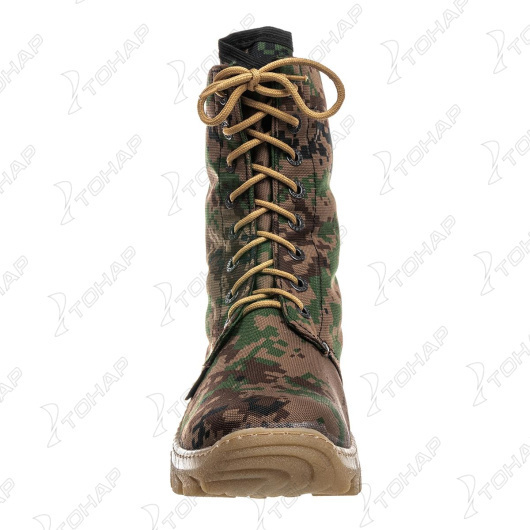 Ботинки «Турист» (камуфляж) Назначение: для активного отдыха, туризма. Обувь выполнена из водоотталкивающей ткани, с микропористым полиуретановым покрытием. Обладает мембранным эффектом. Легко поддается аэрозольной обработке. Для повышения прочности обуви и защиты ног от случайных ударов в носовой и пяточной части вклеены усиливающие элементы. Летняя модификация. При изготовлении применяются высокопрочные нитки Guterman (Германия). Комфортная температура эксплуатации от 0° до +25°С Наружный слой обуви: Спецткань с водоотталкивающей пропиткой Подошва: Термоэластопласт - износостойкая(ТЭП) Крепление подошвы: Клеепрошивной Высота обуви: 23.5 см. Отличительные особенности без подклада; обувь выполнена из водоотталкивающей ткани; полиуретановое покрытие; легко поддается аэрозольной обработке для повышения влагостойкости; в носовой и пяточной части усиливающие элементы для защиты ног; вставка - супинатор; подошва повышенной износостойкости с высокими показателями грунтозацепляемости;