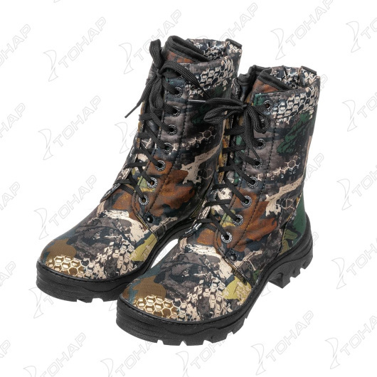 Ботинки «Турист» (камуфляж/камбрель) Назначение: для активного отдыха, туризма. Обувь выполнена из водоотталкивающей ткани, с микропористым полиуретановым покрытием. Обладает мембранным эффектом. Легко поддается аэрозольной обработке. Для повышения прочности обуви и защиты ног от случайных ударов в носовой и пяточной части вклеены усиливающие элементы. Летняя модификация потовыводящая подкладка - «камбрель». При изготовлении применяются высокопрочные нитки Guterman (Германия). Комфортная температура эксплуатации от 0° до +25°С Наружный слой обуви: Спецткань с водоотталкивающей пропиткой Подошва: Термоэластопласт - износостойкая(ТЭП) Подклад обуви: «Cambrellе» (Камбрель) - потовыводящий материал Крепление подошвы: Клеепрошивной Высота обуви: 23.5 см. Отличительные особенности подкладка - «камбрель»; обувь выполнена из водоотталкивающей ткани; полиуретановое покрытие; легко поддается аэрозольной обработке для повышения влагостойкости; подошва повышенной износостойкости с высокими показателями грунтозацепляемости;