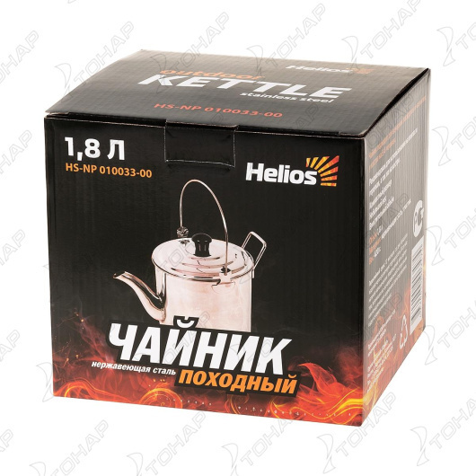 Чайник нерж сталь 1800 мл (HS-NP 010033-00) Helios Чайник туристический из нержавеющей стали объемом 1,8 л. Вскипяченной за раз воды хватит на 5-6 человек. Чайник имеет удобные складные ручки и правильную форму носика для разливания по чашкам. Пищевая нержавейка, из которой он сделан, обеспечивает достаточную прочность изделия и быстрое закипание воды. Рекомендован для использования на плитках и горелках, а также на костре. ХАРАКТЕРИСТИКИ • Объем: 1.8 л. • Вес: 420 г. • Материал: Нержавеющая сталь. Внимание! • Перед первым использованием промыть в чистой воде. • Не нагревать без содержимого. • После использования промыть и высушить. Хранить в чистом и защищенном от влаги месте.
