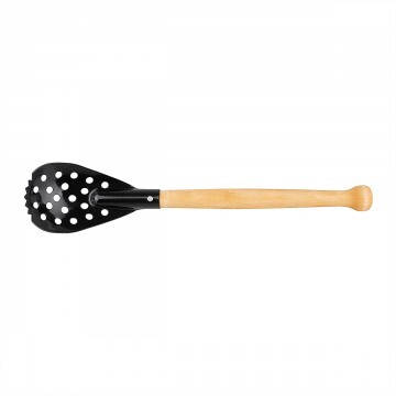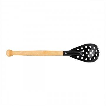 Ручка черпака изготовлена из березы, покрыта специальным защитно-декоративным составом и имеет удобную форму, предотвращающую выскальзывание черпака из рук. Ручка крепится к ложке при помощи шурупа.