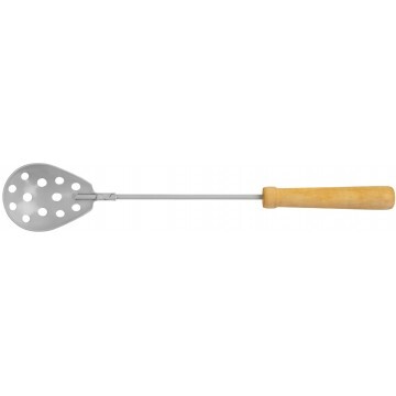 Ложка черпака изготовлена из стали, дополнительно окрашена полимерной порошковой краской. Ручка черпака изготовлена из березы, покрыта специальным защитно-декоративным составом и имеет удобную форму, предотвращающую выскальзывание черпака из рук. Прочность и надежность конструкции обеспечивает длительный срок службы черпака.