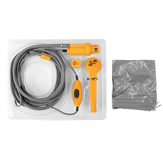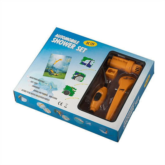 Автомобильный душ с питанием от прикуривателя автомобиля. Незаменим при путешествиях на автомобиле. Комплектация: Лейка, помпа, кабель в прикуриватель, выключатель; Комплект резиновых прокладок; Держатель душа на присоске; Пакет из ПВХ; Крючок для пакета. Производительность: 3 л в минуту; Длина кабеля: 5 м; Питание: 12V.