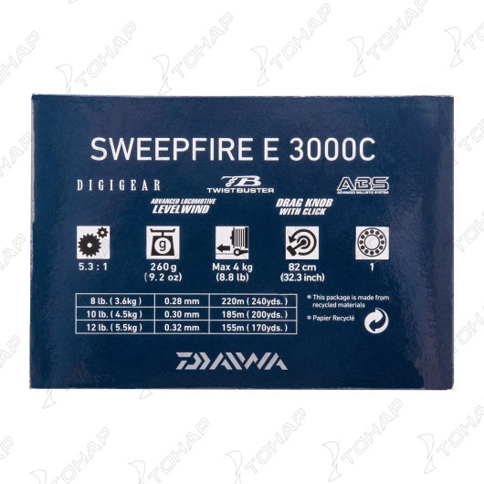 Новая подсерия семейства Sweepfire с маркировкой C являет собой универсальную переднефрикционную катушку. Представители модельного ряда, в зависимости от размера, могут одинаково успешно применяться в разных видах ловли, в том числе в спиннинговой, поплавочной, фидерной и т.д. Основой механизма является главная пара Degegear II, которая обеспечивает крайне плавный ход катушки, присущий моделям более старшего сегмента. Благодаря использованию ролика Twist Buster II и шпули с обратным конусом ABS удалось добиться крайне высокого качества в работе со шнурами и лесками малого диаметра. Данная катушка превосходно подойдет начинающим рыболовам, которые еще не определились со своими предпочтениями в рыбалке, а так же станет этаким 'запасным вариантом', который может заменить более серьезное снаряжение в случае поломки. Характеристики: • Тип: безынерционная; • Подшипников (шт): 1; • Фрикцион: передний; • Передаточное число (об): 5.3:1; • Вместимость шпули: 0.28мм-220м; • Материал основной шпули: пластик; • Вес (г): 260.
