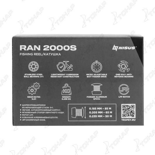 Катушка RAN - -универсальная высококачественная катушка для спиннинговой ловли. •Легкий, антикоррозийный корпус из пластика высокой прочности. •Облегченный ротор из ударопрочного пластика. •Облегченная рукоятка, изготовленная с помощью ЧПУ •Мгновенный стопор обратного хода. •Усиленная дужка лесоукладывателя . •Мультидисковый фрикцион. •Надежные подшипники из нержавеющей стали – 3 + 1. •Равномерная намотка лески. •Система Anti – Reverse •Облегченная алюминиевая шпуля с ARC буртиком, изготовленная с помощью ЧПУ •Эргономичный кноб из нескользящего материала. Характеристики: Производитель: Nisus Вес, гр.: 233 Кол-во подшипников: 3+1 Передаточное число: 5.2:1 Нагрузка на фрикцион, кг.: 5 Основная шпуля: алюминиевая Запасная шпуля: нет Корпус: композит Кноб прорезиненый Ротор: LFP из ударопрочного пластика Вместимость шпули мм/м: 0,185/85; 0,205/65; 0,235/50 Крепление рукояти - прижимной винт Диаметр переднего бортика шпули, см.: 4,6 Глубина шпули, мм.: 3 Намотка за оборот, см.: 64 Разработана и сконструирована в Японии