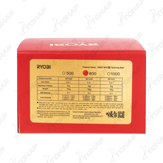 Многим отечественным рыболовам компания Ryobi знакома как фирма, производящая недорогие, но очень качественные безынерционные катушки. SMAP MINI BS - это серия недорогих, но качественных безынерционных катушек с передним фрикционом для ловли в стиле 'ультралайт'. V-образный ротор способствует ровной и аккуратной укладке лески на шпулю Позади ротора располагается переключатель реверса, позволяющий крутить катушку как в одну, так и в другую сторону. Рукоять катушки напрямую вкручивается в главную шестерню. Это значительно снизило люфты у катушки и сделало срок её использования более длительным. Ручка оснащена удобным кнобом и при желании может быть переустановлена на обратную сторону. Характеристики: Производитель: Ryobi Вес, гр.: 180 Кол-во подшипников: 3+1 Передаточное число: 5.2:1 Основная шпуля: алюминиевая Запасная шпуля: нет Корпус: композит Ротор: композит Вместимость шпули мм/м: 0,165/175; 0,205/130; 0,205/95 Нагрузка на фрикцион, кг.: 3 Ручка: вкручивается