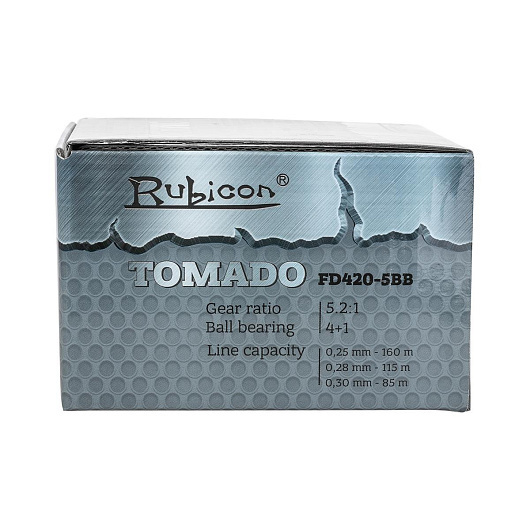 Серия катушек Tomado с передним фрикционом. Оснащена 4+1 подшипниками. Мгновенный антиреверс с переключателем под корпусом. Ролик лесоукладывателя с подшипником скольжения, фиксирующим леску в определенной плоскости, что способствует снижению степени перекручивания лески. Особенности катушки: • Мгновенный стопор обратного хода • Ролик лесоукладывателя с системой противозакручивания лески • Компьютерный баланс ротора катушки • Возможность перестановки ручки на левую или правую сторону Характеристики: Производитель: Rubicon Сезонность: Лето Вместимость шпули, мм/м.: 0.25/160,0.28/115,0.30/85 Передаточное число: 5.2:1 Размер: 2000 Количество подшипников: 4+1 Фрикцион: передний Вес, гр.: 277