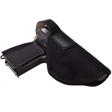 Кобура текстильная предназначена для переноски личного оружия, пистолета системы ПМ и его аналогов. (ИЖ-71, МР-71, МР-654К и т.д.) Изделие выполнено на основе нетканого иглопробивного полотна «Асселур» Тип9 (Полиэфир 100%) сверху дублировано синтетической тканью типа «Oxford 1200 PU». Края изделия окантованы стропой шириной 25мм. На передней стенке пришит кожаный ремешок с кнопкой. На задней стенке пришит кожаный ремешок образующий петлю для подвеса на ремень шириной до 50мм. и предохранительный хлястик. В верхней части хлястика установлен металлический усилитель с кнопкой. Кожаные детали выполнены из натуральной кожи толщиной 2,2-2,4 мм. Выполняется в черном и коричневом цветах. Все части изделия скреплены машинной строчкой. Материал: текстиль/кожа