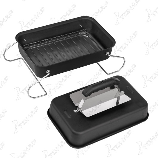 Коптильня предназначена для горячего копчения рыбы, мяса, сала и птицы на открытом воздухе (на рыбалке, в туристических походах, на дачах и т.д.) и позволит вам приготовить вкуснейшие блюда с ароматом дыма, который образуется в результате тления щепы. Коптильня выполнена методом формовки из высокопрочной стали Ст3 толщиной 1 мм. Нагрев коптильни может осуществляться на мангале, на костре или на углях. Специальные фиксаторы позволяют плотно закрыть крышку, а после снятия коптильни с огня фиксаторы превращаются в удобные ножки. Благодаря небольшому размеру, коптильня компакта и удобна в транспортировке, В комплект коптильни входит: корпус, удобная крышка с ручкой и отражателем, решетка для размещения продуктов и поддон для сбора жира. Характеристики: • Материал: сталь Ст3, толщина стенки - 1 мм. • Габаритные размеры: 350х250х145 мм (высота с ручкой - 230 мм). • Вес: 3,2 (± 0,1) кг. * Внимание! Во избежание появления коррозии, рекомендуем насухо протирать изделие после мойки и хранить в сухом и чистом виде.