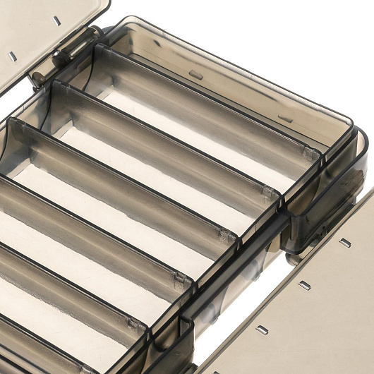 Коробка для воблеров, балансиров и фурнитуры. Двусторонняя, раскрывается книжкой. В коробочке предусмотрены 12 углублений под снасти с крючками. Характеристики: Длинна, см.: 13,2 Ширина, см.: 10,5 Высота,см: 3,3 Цвет: черный.