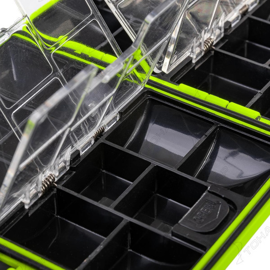 Универсальная пластиковая коробка для рыболовных снастей. Коробка выполнена в форме книжки. Удобные пазы для открывания отделений. Прочный пластик. Характеристики: Размер: 11,5х9,5х3 см Материал: пластик.
