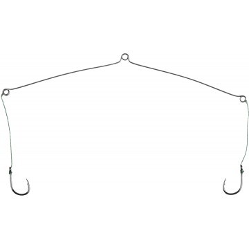 В данной конструкции исключена возможность запутывания поводков. 13-сантиметровое коромысло разводит поводки с крючками на расстояние при котором им нельзя перехлестнуться. Пристегнуть такую оснастку можно к любой донной оснастке, с помощью карабинчика, или заводного колечка: к фидеру, ниже кормушки; к пикеру, ниже груза; к болонской удочке, оснащённой как полудонка. Коромысло - 13см. Два поводка с крючками №10.