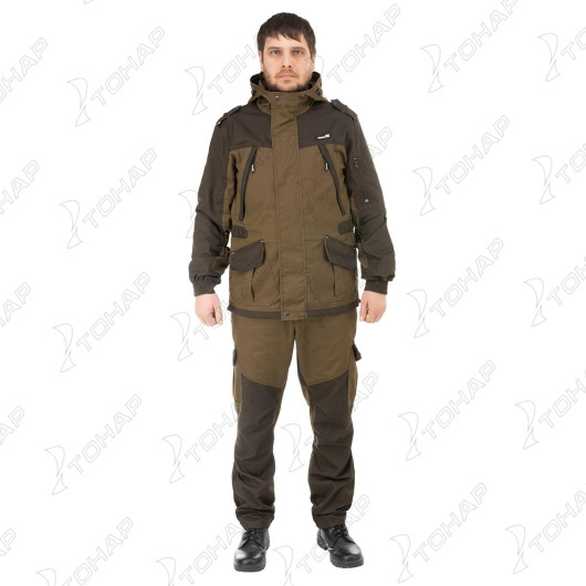 Костюм CONDOR HELIOS - летний мужской костюм из смесовой ткани. Состоит из куртки, брюк. ХАРАКТЕРИСТИКИ: Материал: Твил смесовый (50%хлопок, 50% полиэстер) Плотность ткани: Твил - 220 г/м2 Куртка -Куртка удлиненная, с центральной застежкой на молнию и ветрозащитным клапаном на кнопках. По линии талии заужена с помощью кулисы с эластичной лентой, по низу куртка регулируется шнуром и фиксатором. -Два нагрудных кармана с застёжкой на замок «молния» и два фигурных нижних накладных кармана с клапаном и металлической кнопкой. -Рукав рубашечного типа длинный, на манжете. Манжета частично из эластичной ленты. На рукаве накладной карман с фигурным клапаном и металлической кнопкой. На передней части рукава в области локтя кулиса с эластичной лентой. -Капюшон по лицевому вырезу и затылку регулируется шнуром с держателями, в середину спинки притачивается петля-вешалка. Брюки -Брюки с центральной застёжкой на замок «молния» и шлевками под ремень, 2-е боковые шлёвки длиннее, для закрепления фастекса и бретелей. Бретели из помочной ленты. -На передних половинках брюк карманы с отрезным бочком и боковые фигурные карманы с клапаном на металлическую кнопку. В области колена небольшие складки для удобства движения. -В области под коленом кулиса с эластичной лентой.