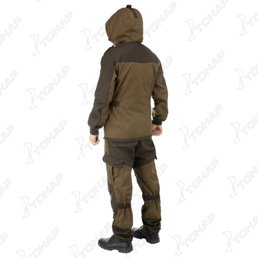 Костюм CONDOR HELIOS - летний мужской костюм из смесовой ткани. Состоит из куртки, брюк. ХАРАКТЕРИСТИКИ: Материал: Твил смесовый (50%хлопок, 50% полиэстер) Плотность ткани: Твил - 220 г/м2 Куртка -Куртка удлиненная, с центральной застежкой на молнию и ветрозащитным клапаном на кнопках. По линии талии заужена с помощью кулисы с эластичной лентой, по низу куртка регулируется шнуром и фиксатором. -Два нагрудных кармана с застёжкой на замок «молния» и два фигурных нижних накладных кармана с клапаном и металлической кнопкой. -Рукав рубашечного типа длинный, на манжете. Манжета частично из эластичной ленты. На рукаве накладной карман с фигурным клапаном и металлической кнопкой. На передней части рукава в области локтя кулиса с эластичной лентой. -Капюшон по лицевому вырезу и затылку регулируется шнуром с держателями, в середину спинки притачивается петля-вешалка. Брюки -Брюки с центральной застёжкой на замок «молния» и шлевками под ремень, 2-е боковые шлёвки длиннее, для закрепления фастекса и бретелей. Бретели из помочной ленты. -На передних половинках брюк карманы с отрезным бочком и боковые фигурные карманы с клапаном на металлическую кнопку. В области колена небольшие складки для удобства движения. -В области под коленом кулиса с эластичной лентой.
