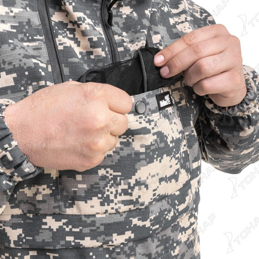 Костюм летний противоэнцефалитный СТОП-КЛЕЩ Helios Костюм 'СТОП-КЛЕЩ' Helios - противоэнцефалитный костюм, который обеспечивает надежную защиту от клещей и кровососущих насекомых. Пять специальных складок-ловушек, манжеты-напульсники на рукавах, внутренние гетры на брюках, капюшон с антимоскитной сеткой и внутренняя рубашка, пришитая к полочке куртки и заправляемая в брюки, обеспечивают максимальную защиту от проникновения к телу клещей и укусов насекомых. Внутри складок-ловушек используется ворсистая белая ткань, которая задерживает клеща и не дает ему проникнуть к телу. Ловушки могут быть дополнительно обработаны специальным инсектоакарицидным средством, в результате чего у клеща, попавшего в такую ловушку, наступает состояние паралича, и он скатывается с одежды. Куртка выполнена по типу 'анорак' с коротким замком до груди, имеется 3 кармана, капюшон закрывается антимоскитной сеткой. На брюках - 2 кармана и специальные усиливающие накладки в области коленей. ХАРАКТЕРИСТИКИ Материал: Ткань смесовая (80% полиэстер/20% хлопок), RipStop Манжеты-напульсники рукавов: Бязь (100% хлопок) Внутренние гетры на брюках: Бязь (100% хлопок) Внутренняя рубашка куртки: Бязь (100% хлопок) Цвет: Серый Размер: 64-66 ОСОБЕННОСТИ • Антимоскитная сетка складывается в нагрудный карман • Складки-ловушки с ворсистой белой тканью внутри • Удобный капюшон с регулировкой по объему головы • Внутренняя рубашка, пришитая к полочке куртки, заправляется в брюки • Рукав плотно облегает запястье за счет эластичного манжета • Внутренний манжет-напульсник обеспечивает дополнительную защиту от проникновения клещей • Низ куртки утягивается кулиской • Брюки свободного кроя с эластичным плотно прилегающим поясом • Внутренние гетры для дополнительной защиты от проникновения клещей • Манжет по низу штанин Смесовые ткани Это ткани с различным соотношением натурального и синтетического волокна. Натуральные волокна обеспечивают гигиенические качества ткани, а синтетические – придают высокие эксплуатационные свойства. Смесовая ткань получается путем смешивания натуральных и синтетических волокон. Процентное соотношение того и другого определяет свойства готового полотна. Если же смесовая ткань имеет масловодоотталкивающую пропитку, то это придаст изделию из смесовой ткани высокие масло- и грязеотталкивающие свойства. Однако при их длительном использовании свойства такой пропитки могут ослабнуть, поэтому не стоит забывать о специальном уходе и хранении таких изделий.