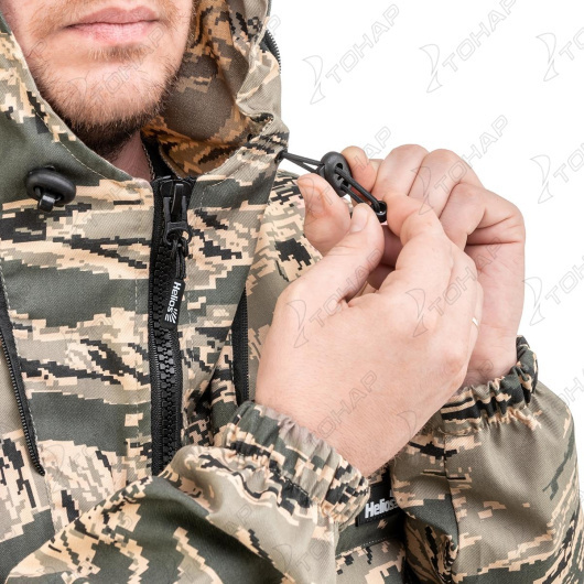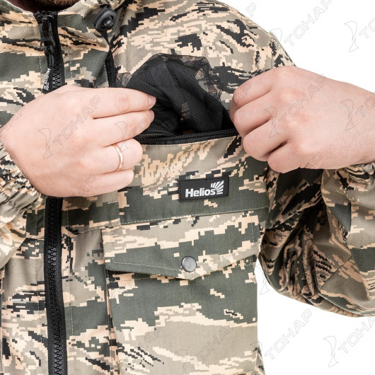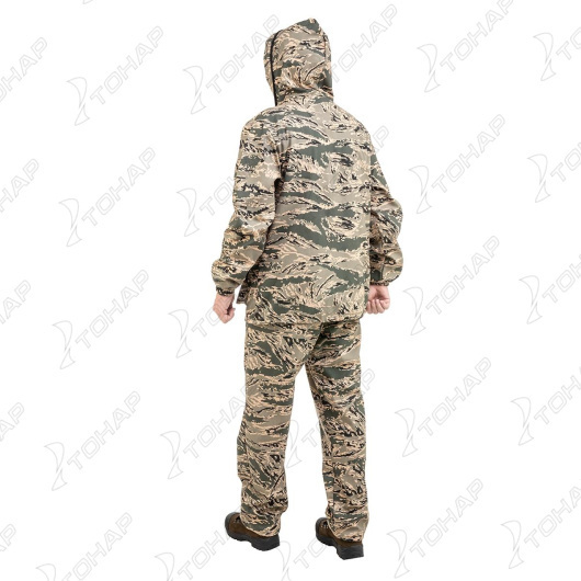 Универсальный легкий костюм Тайфун Helios из мягкой и бесшумной ткани подходит для любого вида отдыха на природе в летний период: для охоты, рыбалки, путешествий, прогулок в лесу. Отлично подойдет для военизированных игр (пейнтбола, страйкбола и др.). Прочный и дышащий смесовый материал твил с пич-эффектом, создает особую мягкость и бархатистость поверхности костюма. Изделие из такой ткани обладает высокой износостойкостью и не теряет цвет. Костюм состоит из удлиненной куртки и брюк, с поясом на эластичной ленте. Ширина брюк по нижней части регулируется кулисой. Эргономичный крой обеспечивает свободу и комфорт движений. Съемная противомоскитная сетка, защищающая лицо, пристегивается при необходимости на молнию к капюшону. Маскировочный эффект и практичность в носке создает специальный камуфлированный принт. Материал: Ткань смесовая твил (35% хлопок/65% полиэстер) с Peach эффектом Цвет: КМФ Легион Размер: 60-62/182-188 ОСОБЕННОСТИ • Удлиненная куртка с центральной застежкой на молнию • Капюшон с регулировкой по объему • Съемная противомоскитная сетка убирается в нагрудный карман • Низ рукавов куртки оформлен эластичной манжетой • 4 объемных кармана с клапаном на кнопке на куртке, 2 кармана на брюках • Брюки свободного кроя выполнены на поясе с эластичной резинкой и шлевками под ремень. • По низу ширина брюк регулируется кулисой. *В зависимости от партии ткани внешний вид изделия и цвет может незначительно отличаться от представленных изображений.