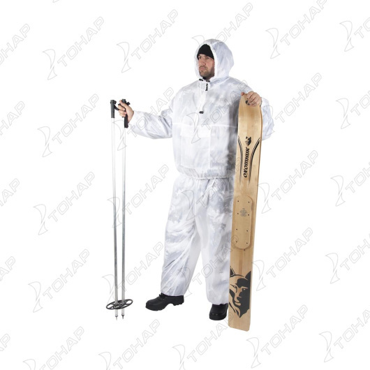 Костюм маскировочный Helios Костюм маскировочный одевается поверх теплого костюма. ХАРАКТЕРИСТИКИ Материал: слабо обмерзающая, быстросохнущая ткань Taffetta 190Т (100% полиэстер) Расцветка: белый. ОСОБЕННОСТИ • куртка - анорак с регулируемым по овалу лица капюшоном; • низ рукавов, куртки и брюк - на резинках; • свободный доступ к карманам на одежде внутрь сквозь прорезные карманы на брюках; • костюм идет в компактном чехле.