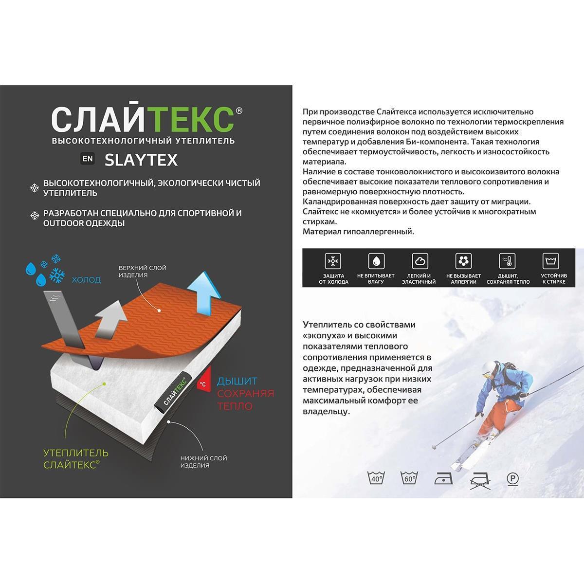 Костюм зимний AREDA 15/15 К Nisus Зимний костюм «AREDA» (АРЕДА) состоит из куртки и полукомбинезона. Так как костюм предназначен в качестве экипировки для зимних видов активного отдыха, то в нем максимально продумано множество уникальных функциональных элементов, отталкиваясь от специфики эксплуатации изделия. Костюм выполнен в комбинации высокотехнологичной мембраной ткани FORTEX", которая специально разработана для функциональной верхней одежды, используемой в сложных погодных условиях: влагостойкость составляет 15000 мм, дышащая способность - 15000 г/м2/24час. Данные характеристики позволяют костюму выдержать существенные осадки на протяжении нескольких часов и оставлять ваше тело абсолютно сухим даже при очень большой физической активности. В качестве утеплителя в костюме используется SLAYTEX. Это современный материал из синтетических волокон со специальным плетением, благодаря чему утеплитель не пропускает холод, отлично удерживает тепло, обеспечивая комфорт в самые сильные морозы. Для создания завершенного образа можно приобрести Варежки AREDA и Шапка AREDA . ХАРАКТЕРИСТИКИ Комфортная температура использования: от -15°С до -20°С, с теплым термобельем и флисовым вторым слоем экстрим до -30°С Назначение: активный отдых Материал: 100%полиэстер, DWR Мембрана: FORTEX Водонепроницаемость(мм в. ст.): 15 000 Паропроницаемость(г/м2/24ч): 15 000 Утеплитель: куртка - Slaytex 250 гр/м2; полукомбинезон - Slaytex 150 гр/м2. Подкладка: Таффета+флис Вес (р.S): 1900 гр. ОСОБЕННОСТИ • Удлиненная куртка, свободного кроя. • Снегозащитная юбка гарантирует максимальную защиту спины от попадания снега внутрь при занятиях активными видами отдыха. • Теплый съемный капюшон имеет регулировку по объему головы. Удобный козырек на капюшоне защитит от попадания лишней влаги на лицо при непогоде, не ограничивает обзор. • Воротник утеплен и имеет высокую эргономичную форму. • Удлиненные рукава с внутренними манжетами надежно сохраняют тепло. Внутренние манжеты имеют прорезь под большой палец. Внешний манжет регулируется по длине застежкой Velcro. • Куртка имеет два нижних наружных кармана для возможности быстрого обогрева рук. 2 внутренних кармана (один из сетки для хранения разных мелких вещей, другой - на молнии для документов и сотового телефона). • Двухзамковая застежка-молния надежно защищена от промокания двойным клапаном на магнитах. • Стопорная кнопка внизу планки предотвращает самопроизвольное открывание молнии. • Для защиты в темное время суток, на костюме имеются светоотражающие элементы. При попадании лучей искусственного света, костюм АРЕДА ярко выделится в темноте и убережет вас от нежелательных казусов экстремального отдыха. • Полукомбинезон на лямках с высокой спинкой, что обеспечивает дополнительную защиту от холода. • Эластичные лямки помогут отрегулировать полукомбинезон по высоте. • В области пояса по бокам вшита резинка-стяжка, за счет которой полукомбинезон максимально прилегает к телу. • Молния защищена от промокания и продувания клапаном на кнопке. • Полукомбинезон имеет два кармана на штанинах. • Наличие боковых молний, которые доходят до середины колена для наиболее удобного надевания зимних сапог. • Потаённые снегозащитные манжеты. • Светоотражающие элементы. ВНИМАНИЕ! Для костюма из мембраны рекомендована бережная стирка со специальными средствами (стирка