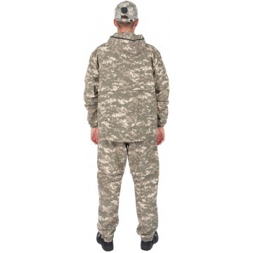 Костюм летний противоэнцефалитный СТОП-КЛЕЩ Helios Костюм "СТОП-КЛЕЩ" Helios - противоэнцефалитный костюм, который обеспечивает надежную защиту от клещей и кровососущих насекомых. Пять специальных складок-ловушек, манжеты-напульсники на рукавах, внутренние гетры на брюках, капюшон с антимоскитной сеткой и внутренняя рубашка, пришитая к полочке куртки и заправляемая в брюки, обеспечивают максимальную защиту от проникновения к телу клещей и укусов насекомых. Внутри складок-ловушек используется ворсистая белая ткань, которая задерживает клеща и не дает ему проникнуть к телу. Ловушки могут быть дополнительно обработаны специальным инсектоакарицидным средством, в результате чего у клеща, попавшего в такую ловушку, наступает состояние паралича, и он скатывается с одежды. Куртка выполнена по типу "анорак" с коротким замком до груди, имеется 3 кармана, капюшон закрывается антимоскитной сеткой. На брюках - 2 кармана и специальные усиливающие накладки в области коленей. ХАРАКТЕРИСТИКИ Материал: Ткань смесовая ( 65% полиэстер, 35% хлопок ) RipStop Манжеты-напульсники рукавов: Бязь ( 100% хлопок ) Внутренние гетры на брюках: Бязь ( 100% хлопок ) Внутренняя рубашка куртки: Бязь ( 100% хлопок ) ОСОБЕННОСТИ • Антимоскитная сетка складывается в нагрудный карман. • Складки-ловушки с ворсистой белой тканью внутри. • Удобный капюшон с регулировкой по объему головы. • Внутренняя рубашка, пришитая к полочке куртки, заправляется в брюки. • Рукав плотно облегает запястье за счет эластичного манжета. • Внутренний манжет-напульсник обеспечивает дополнительную защиту от проникновения клещей. • Низ куртки утягивается кулиской. • Брюки свободного кроя с эластичным плотно прилегающим поясом. • Внутренние гетры для дополнительной защиты от проникновения клещей. • Манжет по низу штанин.