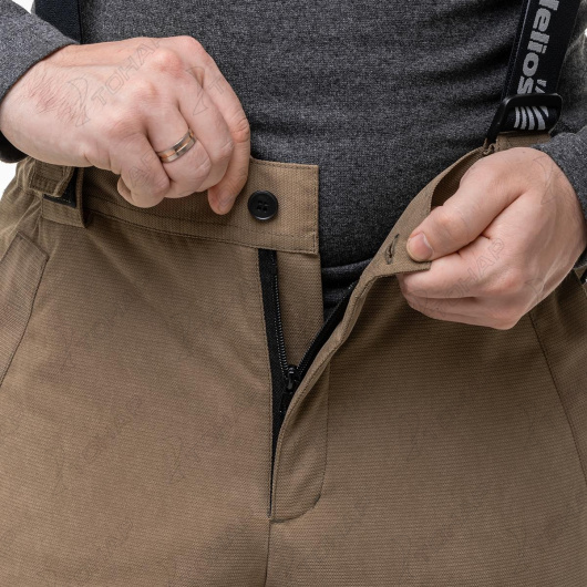 Костюм состоит из куртки и полукомбинезона. Верхняя ткань: «Исландия» с мембраной 5000/6000 Утеплитель: «Слайтекс» плотностью 150 гр./м.кв. в куртке и 70 гр./м.кв. в брюках. Температурный режим: от 0 до -15ºС. Куртка - куртка, укороченная прямого силуэта, с центральной застежкой на молнию и пластроном под замок. - капюшон съемный на молнии и двух кнопках по лицевому вырезу регулируется резиновым шнуром с держателями. - по низу шнур с фиксаторами, для регулировки ширины куртки. - пять карманов на'молнии': два нагрудных, два нижних и один внутренний. - подкладка куртки выполнен из полибрушета, нижний воротник и подкладка капюшона - из флиса, подклад рукава из шелка подкладочного. - рукав рубашечного типа длинный, по низу рукава регулировочный хлястик, на контактную ленту и трикотажный манжет. Полукомбинезон - прямого силуэта (анатомический крой), на притачном поясе с отстегивающейся спинкой, с подкладкой из шелка и с отстёгивающимися бретелями. - бретели регулируются по длине эластичной лентой и фиксируются с помощью 2- щелевых пряжек и передних шлёвок с лентой «велькро». - по поясу пять шлевок, между боковыми шлевками в поясе эластичная лента. - брюки с прорезными карманами на «молнию». - в области колен наколенник с защипами.