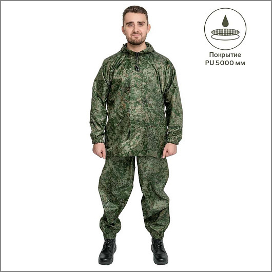 Костюм ветровлагозащитный Походный (Helios) Костюм ветровлагозащитный 'ПОХОДНЫЙ' из легкой непромокаемой ткани (PU 5000 мм в.ст.) обеспечит надежную защиту от атмосферных осадков, ветра, грязи. Швы проклеены.Надевается поверх любой одежды. Можно использовать в туристических походах, на охоте или рыбалке. Ветрозащитная планка усиливает защиту от проникновения ветра и воды внутрь. Капюшон регулируется шнуром по лицевому вырезу. Два боковых внутренних кармана под планкой на куртке. Рукава, пояс и низ брюк - на резинке. Материал Таффета 210Т имеет плетение нитей RipStop, благодаря чему повышается износостойкость ткани. В комплекте с костюмом идет удобный чехол для хранения. Малый вес и компактная упаковка позволяют положить такой костюм в любую сумку или рюкзак. ХАРАКТЕРИСТИКИ Материал: Таффета 210Т, RipStop, с покрытием PU (100% полиэстер) Водонепроницаемость(мм в. ст.): 5 000 Цвет: КМФ Размер: 58 ОСОБЕННОСТИ • Ветрозащитная планка куртки, усиливает защиту от проникновения ветра и воды • Регулируемый капюшон • Два боковых внутренних кармана под планкой на куртке • Рукава, пояс и низ брюк - на резинке • Удобный чехол под костюм • Швы проклеенны