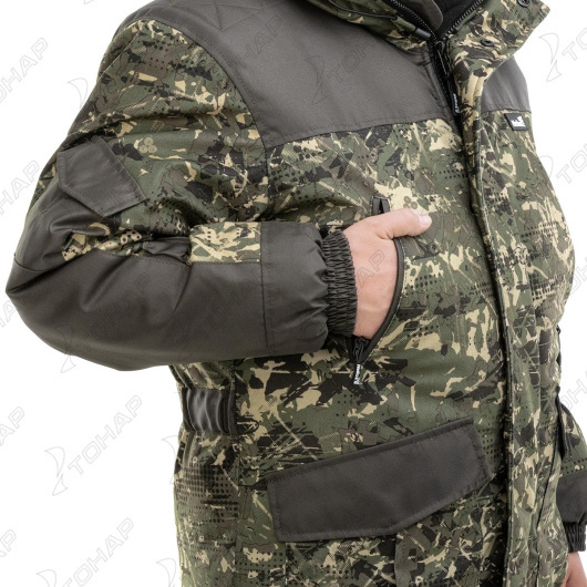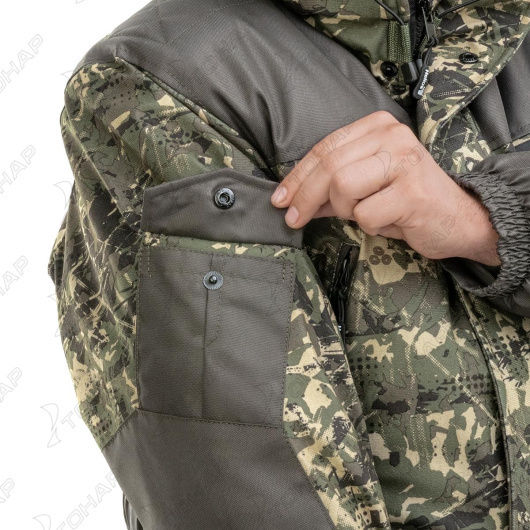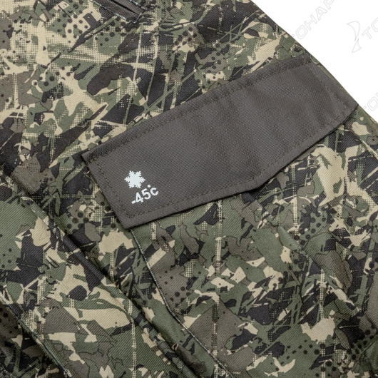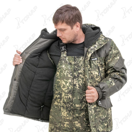 Костюм зимний ГОРКА (полукомбинезон) Helios Костюм зимний 'Горка' (полукомбинезон) предназначен для зимней рыбалки, туризма, отдыха на природе в суровых погодных условиях. Универсальная расцветка позволяет использовать костюм и в городских условиях или в качестве экипировки для экстремальных видов работ на открытом воздухе. Уникальный крой костюма 'Горка' позаимствован из военной экипировки, поэтому он максимально удобен в носке. ХАРАКТЕРИСТИКИ Комфортная температура эксплуатации: до -45°С Материал: Taslan (100% полиамид) DWR Вставка: Алова Мембрана: да Водонепроницаемость(мм в. ст.): 8 000 Паропроницаемость(г/м2/24ч): 1 000 Утеплитель: ThermoWool (100% полиэстер) 400 гр/м2 Подкладка: флис, 100% полиэстер ОСОБЕННОСТИ Куртка • Удлиненная модель с центральной застёжкой на двухзамковую молнию. Защитная планка на кнопках. • Удобный капюшон с утягивающей кулисой для регулировки по объему. Подклад капюшона выполнен из флиса. • Шесть вместительных наружных карманов: 2 прорезных кармана на груди, 2 нижних кармана с клапаном на кнопке, 2 кармана с клапаном на кнопке на рукавах. Один внутренний карман на молнии. • В области плечей, локтей и низа рукавов сделаны специальные усиливающие накладки. • Низ рукавов оформлен манжетом на резинке, также сделана специальная кулиса с эластичной тесьмой на задней половине рукава в области локтя. Полукомбинезон • Свободный покрой. • Лямки с регулировкой по длине. • 2 прорезных кармана на молнии, 1 боковой накладной карман с клапаном на кнопке. • Усиливающие накладки в области коленей и по низу, а также на задних половинках брюк в области сидения. Материал верха, мембрана Taslan, имеет особую структуру - небольшой рубчик, который образуется благодаря репсовому переплетению полиамидных нитей, что придает материалу высокую износоустойчивость. Для улучшения гигроскопичных свойств Taslan покрывается водонепроницаемой пропиткой, которая дополнительно защищает материал от грязи, не давая ей забиваться между переплетенными нитями. Утеплитель TermoWool - современный практичный материал, который состоит из пустотелых полиэфирных волокон, скрученных в форме пружин. За счёт пустотелости волокон утеплитель хорошо пропускает воздух и обеспечивает отличную теплоизоляцию, не впитывает влагу и запахи.