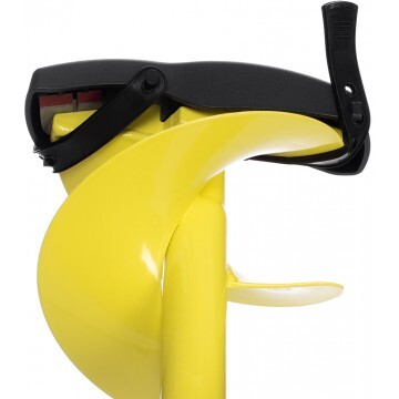 Нескользящие "теплые" ручки обеспечат максимальный комфорт при пробуривании. Верхняя и нижняя рукоятки ледобура смещены относительно оси шнека. Такое расположение рукояток позволяет вращать ледобур одновременно двумя руками, ход бура плавный, бурит без усилий. Надежное полимерное покрытие выдерживает резкие колебания температуры и сильные механические нагрузки. На шнеке сделана "теплая" насадка для переноски ледобура.