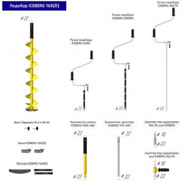 - Нож "Iceberg 160R v2.0" - 2 шт. (установлены на ледобур)
