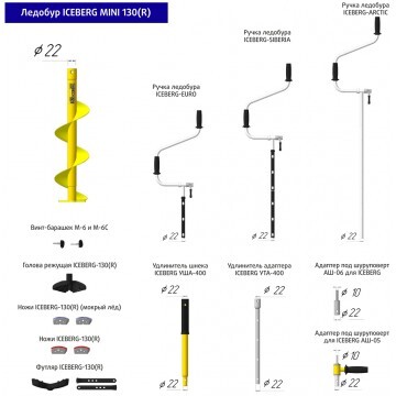 - Нож "Iceberg 130R v2.0" - 2 шт. (установлены на ледобур).