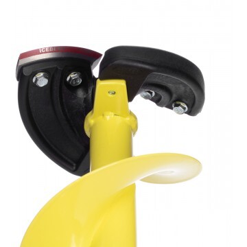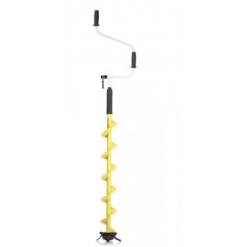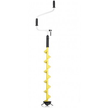 Верхняя и нижняя рукоятки ледобура смещены относительно оси шнека. Такое расположение рукояток позволяет вращать ледобур одновременно двумя руками, ход бура плавный, бурит без усилий.