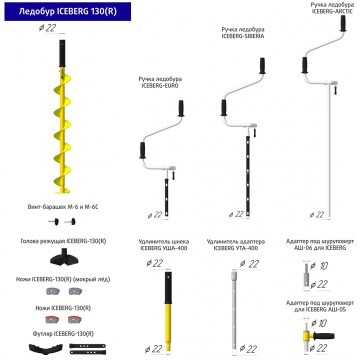 - Нож "Iceberg 130R v2.0" - 2 шт. (установлены на ледобур)