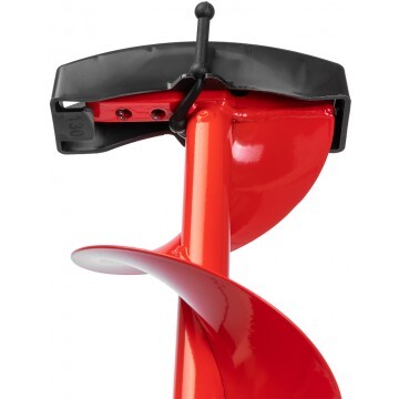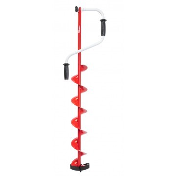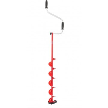 Верхняя рукоятка ледобура смещена относительно оси ледобура на 105 мм, а нижняя на 165 мм. Такое расположение рукояток позволяет вращать ледобур одновременно двумя руками, тем самым увеличивая скорость бурения лунок во льду.
