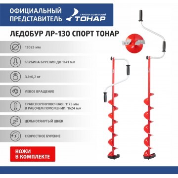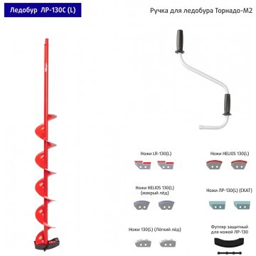 Ледобур комплектуется стандартными ножами "ТОНАР", также можно установить полукруглые ножи Helios 130, максимально адаптированные под бурение любого типа льда, в том числе и мокрого льда.