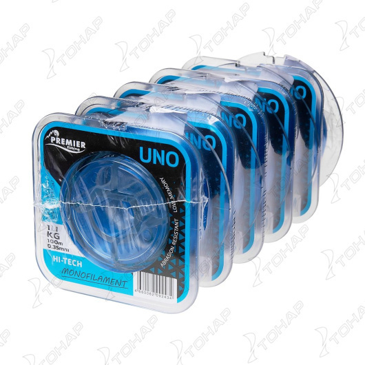 Леска UNO торговой марки PREMIER fishing – универсальная леска, которая создана с применением последних достижений в области производства монофильных лесок. Благодаря голубому цвету, она малозаметна в прозрачной воде и не отпугнет осторожную рыбу. Леска обладает всеми необходимыми параметрами для успешной рыбалки. Идеально калиброванная по всей длине, леска имеет хорошую эластичность и мягкость. Устойчива к абразиву и истиранию. Один из лучших вариантов по соотношению «цена-качество», что позволит использовать качественную и надежную монофильную леску как опытным рыболовам, так и начинающим. Леска отлично подойдет как для поплавочного удилища, так и для спиннинга, и фидера. Характеристики: • Диаметр: 0,35 мм. • Разрывная нагрузка: 11,1 кг. • Размотка: 100 м. • Состав: 100% нейлон. • Цвет: голубой Преимущества лесок данной серии: - Точно калиброванный диаметр - Высокая абразивная устойчивость - Эластичность и мягкость - Отсутствие эффекта памяти - Стойкость к ультрафиолету Леска продается поштучно. Имеет промежуточную упаковку в пленку по 5 штук.