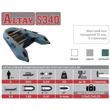 Моторная лодка «АЛТАЙ S340» производства ГК «ТОНАР» предназначена для рыбалки, охоты и активного отдыха на воде. Лодка специально разрабатывалась для эксплуатации на больших реках и водохранилищах. За счет увеличенной килеватости она хорошо держит волну, легко управляема, быстро выходит на глиссер и обладает высокой маневренностью. Лодка имеет повышенную вместимость кокпита, не теряя при этом своих скоростных качеств. Увеличенный диаметр борта позволяет эксплуатировать мощные и тяжелые двигатели. Характеристики «АЛТАЙ S340»: Длина наибольшая: 340 см. Ширина наибольшая: 169 см. Длина кокпита: 234 см. Ширина кокпита: 75 см. Диаметр баллона: 47 см. Число надувных элементов: 3+1. Пассажировместимость: 5 человек. Грузоподъемность: 500 кг. Масса изделия в комлекте: 60,0 кг. Размер коробки лодки - 110х70х50 см, размер коробки пола - 92х60х12 см. Давление в баллонах/днище: 0,24 кгс. Плотность армированного ПВХ: 1100 г/м.кв. Рекомендуемая мощность двигателя: 15 л.с. Максимальная мощность двигателя: 18 л.с. Максимальный вес двигателя: 52 кг. Цвет: белый/синий. Особенности конструкции: • Лодка имеет жесткий пол из водостойкой фанеры, который легко собирается при помощи специальных алюминиевых профилей и 2 стрингеров. • Крепление двух банок к баллонам на лодке выполнено по технологии "ликтрос-ликпаз", благодаря чему они могут регулироваться по длине лодки. • Толщина транца: 25 мм. Брызгоотбойные косынки на транце. • Сливной клапан, вмонтированный в транец, позволяет без затруднений удалять воду из внутреннего пространства лодки. • Для защиты киля от порезов и потертостей на лодке установлен ПВХ-профиль, а также им защищены стрингера со стороны днища, нижняя кромка транца и нижняя часть булей. Лодка поставляется со стандартным набором комплектующих: • Ножной насос 7 л. • 2 весла с держателями весла в уключине. • 2 жестких сиденья. • Пол-книжка (5 секций жесткого настила). • Стрингер продольный (2 штуки). • Сумка упаковочная. • Сумка для пола. • Ремкомплект и руководство по эксплуатации (паспорт).