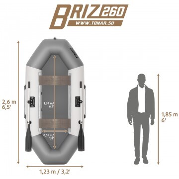 Надувная лодка «БРИЗ 260» производства ГК "ТОНАР" двухместная лодка с классической О-образной формой. Баллон лодки разделен перегородками на 2 независимых отсека, что гарантирует безопасность пребывания на воде. Просторный кокпит позволит свободно разместиться двум пассажирам и при этом удобно расположить необходимый груз. На лодке используется современная и надежная фурнитура отечественных производителей. Рекомендованные районы плавания: закрытые акватории, небольшие озера, реки. Характеристики лодки «БРИЗ-260»: Длина наибольшая: 2,60 м. Ширина наибольшая: 1,23 м. Диаметр баллона наибольший: 0,33 м. Вес комплекта: 11,7 кг. Размер упаковки - 76х45х20 см. Грузоподъемность: 210 кг. Пассажировместимость: 2 человека. Количество герметичных отсеков: 2 шт. Рабочее давление в баллоне: 0,2 кгс/см2. Плотность ПВХ-ткани: 750 г/м.кв. Цвет: бело/серый. Лодка поставляется со стандартным набором комплектующих: • Ножной насос 5 л. • 2 весла с держателями весла в уключине. • 2 жестких сиденья. • Сумка-рюкзак для хранения и перевозки. • Ремкомплект и руководство по эксплуатации (паспорт).