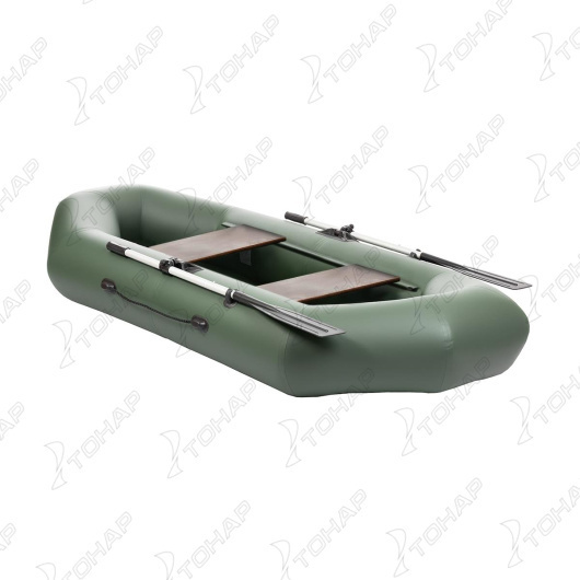 Лодка «Бриз А240» производства «ТОНАР» - двухместная лодка с классической О-образной формой, оснащенная надувным дном низкого давления. Надувное дно является дополнительным надувным отсеком и создает большую безопасность и комфорт при эксплуатации лодок, компенсируя ударную нагрузку. Дно НДНД также является термоизолирующим слоем. Лодка «Бриз А240» с надувным дном отличается меньшей осадкой, что позволяет ей проходить мелководье, каменные перекаты и т.д. В данной лодке смогут расположиться 2 рыбака и груз, который может понадобиться для рыбалки, охоты или для активного отдыха на воде. Размер кокпита - 1,75 х 0,55 м. Максимальная грузоподъемность лодки 200 кг. Баллон лодки разделен перегородками на 2 независимых отсека, что гарантирует безопасность пребывания на воде. На лодке используется современная и надежная фурнитура отечественных производителей. Рекомендованные районы плавания: закрытые акватории, небольшие озера, реки. Характеристики лодки «Бриз А240»: • Длина: 2,4 м; • Ширина: 1,23 м; • Длина кокпита: 1,75 м; • Ширина кокпита: 0,55 м; • Диаметр баллона: 0,33 м; • Грузоподъемность: 200 кг; • Пассажировместимость: 2 человека; • Вес комплекта: 12,5 (±0,2) кг; • Плотность ПВХ-ткани: 750 гр/м2; • Рабочее давление в баллоне: 0,2 кгс/см2; • Дно: надувное дно низкого давления; • Цвет: зеленый; • Размер упаковки: 76х43х25 см. Преимущества модели: • Неглубокая осадка; • Дополнительная теплоизоляция в холодную погоду; • Амортизация (надувное дно принимает на себя удары волн, снижая тем самым вибрации всего корпуса). Лодка поставляется со стандартным набором комплектующих: • Ножной насос 5 л; • 2 весла с держателями весла в уключине; • 2 жестких сиденья из влагостойкой фанеры, • Сумка (вещь-мешок) из износостойкого Оксфорда для хранения и перевозки; • Ремкомплект и руководство по эксплуатации (паспорт). Гарантия: • Материал корпуса лодки - 2 года на случай образования трещин, пористости и гниения; • Сварные швы корпуса - 5 лет на случай расслоения; • Клеевые швы надувного дна низкого давления (НДНД) - 1 год; • Комплектующие лодки - 1 год на случай поломки.