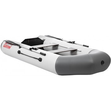 Данная модель лодки производства ГК «ТОНАР» по размерам и весу приближена к надувным гребным лодкам, но оснащена стационарным транцем толщиной 14 мм, что позволяет устанавливать мотор мощностью до 4 л.с. Транец гармонично сочетается с общей компоновкой лодки и надежно вклеен в корпус лодки с использованием специального усилителя-фиксатора транца. Лодка обладает легким ходом как под веслами, так и под мотором. Крепление сидений по технологии ликтрос-ликпаз позволяет свободно передвигать банки по длине лодки. Характеристики лодки «Капитан 260Т»: Длина наибольшая: 2,60 м. Ширина наибольшая: 1,23 м. Длина кокпита: 1,73 м. Ширина кокпита: 0,55 м. Диаметр баллона наибольший: 0,34 м. Транец: стационарный. Мощность двигателя: до 4 л.с. Вес комплекта: 14,4 кг. Размер упаковки - 86х52х22 см. Грузоподъемность: 210 кг. Пассажировместимость: 2 человека. Количество герметичных отсеков: 2 шт. Рабочее давление в баллоне: 0,2 кгс/см.кв. Плотность ПВХ-ткани: 750 г/м.кв. Цвет: бело-серый. Лодка поставляется со стандартным набором комплектующих: • Ножной насос 5 л. • 2 весла с держателями весла в уключине. • 2 жестких сиденья. • Сумка упаковочная. • Ремкомплект и руководство по эксплуатации (паспорт).