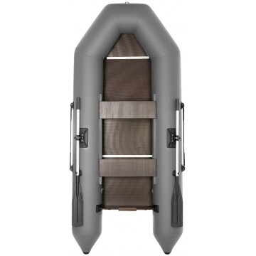 Лодка «КАПИТАН 280Тс» производства ГК «ТОНАР» оснащена стационарным транцем толщиной 14 мм, на который можно установить мотор мощностью до 4 л.с. Транец гармонично сочетается с общей компоновкой лодки, обладает достаточной прочностью и выдерживает статические нагрузки от веса мотора и динамические нагрузки, возникающие при эксплуатации надувной моторной лодки (от упора винта, вибрации, ударов при наезде на подводные препятствия и при реверсировании). Транец надежно вклеен в корпус лодки с использованием специального усилителя-фиксатора транца. Характеристики лодки «КАПИТАН 280Тс»: Длина наибольшая: 2,80 м. Ширина наибольшая: 1,23 м. Длина кокпита: 193 м. Ширина кокпита: 0,55 м. Диаметр баллона наибольший: 0,34 м. Транец: стационарный. Мощность двигателя: до 4 л.с. Масса изделия в комплекте: 21,5 кг. Размер упаковки - 78х58х25 см. Грузоподъемность: 210 кг. Пассажировместимость: 2 человека. Количество герметичных отсеков: 2 шт. Рабочее давление в баллоне: 0,2 кгс/см2. Плотность ПВХ-ткани: 750 г/м.кв. Цвет: серый. Лодка поставляется со стандартным набором комплектующих: • Ножной насос 5 л. • 2 весла с держателями весла в уключине. • 2 жестких сиденья. • Пол-книжка (4 секции жесткого настила, толщина 6 мм). • Сумка для хранения и перевозки. • Ремкомплект и руководство по эксплуатации (паспорт). Лодка оснащена жестким вставным дном типа «книжка», изготовленным из влагостойкой фанеры с противоскользящим покрытием. Банки крепятся к бортам лодки по системе ликтрос-ликпаз.