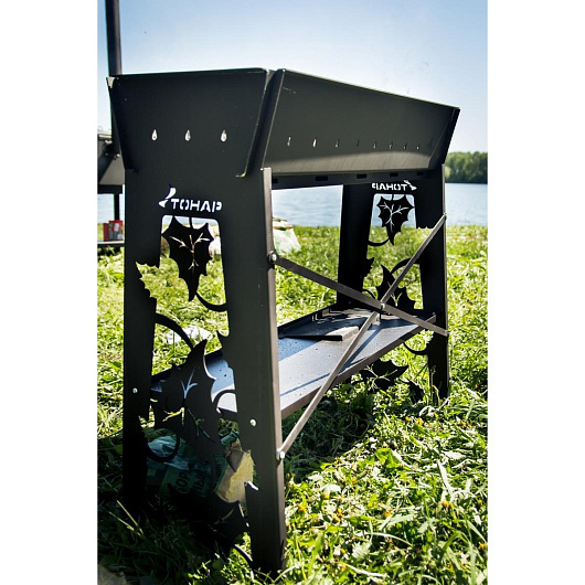 Надежный стационарный мангал «ГЕФЕСТ ПРЕМИУМ» предназначен для готовки мяса, птицы, рыбы или овощей на углях на открытом воздухе. Размер в собранном виде: 895х370х850 мм. Вес - 32 кг. Материал: высококачественная сталь толщиной 3 мм, за счет чего обеспечивается максимальная жесткость конструкции и длительный срок службы изделия. Простота конструкции позволяет собрать мангал за несколько минут. В разобранном виде мангал очень компактен (900х380х80мм) и удобен для транспортировки. Длина жаровни (85 см) вмещает 2 решетки-гриль/12 шампуров одновременно. Боковые отверстия обеспечивают оптимальный приток воздуха для поддержания горения и жара углей. Перемещающаяся перегородка позволяет сделать необходимую высоту слоя угля в каждой секции жаровни для готовки определенного блюда. Глубина жаровни - 15 см. Трапециевидная форма жарочной камеры создает оптимальную температуру для прожаривания шашлыка. Нижняя полка позволяет удобно и компактно хранить все необходимые материалы и подручные средства и обеспечивает общую жёсткость всей конструкции изделия. Устойчивые, удлиненные ножки (85 см) также сделают процесс приготовления на мангале более комфортным. Термостойкая краска (до 750 С) сохранит хороший внешний вид и защитит мангал от коррозии. Изящный рисунок на торцевых стенках мангала придает эстетичный вид и несомненно украсит вашу зону отдыха.