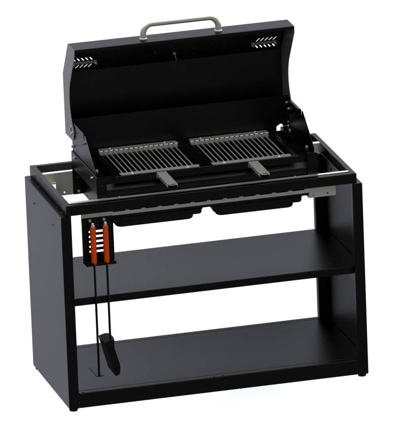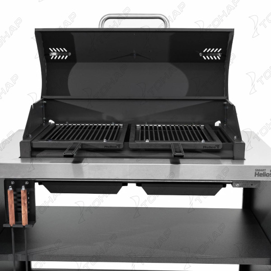 Модульные уличные кухни HELIOS SMART — это идеальное решение для обустройства вашей летней кухни с мангальной зоной и создания комфортных условий приготовления пищи на открытом воздухе. Уличная кухня может быть не менее стильной, удобной и технологичной, чем обычная. Кухню HELIOS SMART можно наилучшим образом адаптировать под ваши персональные запросы и бюджет, выбрав модули с теми функциями, которые планируете использовать постоянно, чтобы получить максимум пользы.Широкий выбор кухонных модулей позволяет создать индивидуальную уличную зону отдыха с возможностью готовить на свежем воздухе. Модульная кухня — это стильное решение для оформления патио, террасы или беседки. Модуль уличной кухни HELIOS SMART Мангал-термо представляет собой стол с рабочей поверхностью из пищевой нержавеющей стали со встроенным мангалом. Каждая деталь от фасадных элементов до встроенных конструкций отличается устойчивостью к внешним погодным условиям. Корпус жаровни Мангала-термо имеет двойные стенки из стали толщиной 2 мм, которые дольше удерживают температуру внутри жаровни, в отличии от простых мангалов. В жаровне предусмотрены отверстия в днище, которые обеспечивают доступ воздуха к углям, что значительно облегчает их розжиг и способствует быстрому разгоранию. Фигурные вырезы в стенках жаровни (по краю) дают возможность регулировать положения шампуров. На продольных стенках жаровни выполнены ребра жесткости, которые практически исключают деформацию мангала при нагреве. Жаровня мангала окрашена термостойкой краской, которая выдерживает нагрев до 1000°С. Также Мангал-термо оснащен крышкой-гриль с термометром и съемными решетками для удобства приготовления пищи. Корпус модуля состоит из столешницы и каркаса. Столешница изготовлена из пищевой нержавеющей стали, обеспечивающей долговечность и легкость в уходе. Дополнительная полка в основании имеет два положения высоты, что позволяет организовать хранение всех необходимых кухонных принадлежностей наиболее удобным образом. Высота модуля регулируется с помощью специальных ножек. Преимущества модуля: - Столешница из пищевой нержавеющей стали имеет продуманную конструкцию против перегрева - Надежное полимерное покрытие каркаса - Термостойкое покрытие жаровни, выдерживающие нагрев до 1000°C - Регулируемые по высоте ножки - Полка с двумя положениями - Двойные стенки мангала-термо дольше удерживают тепло в жаровне - Два выдвежных зольника - Регулируемые вениляционные отверстия - В корпусе мангала специальные пазы для шампура вертела - Инструменты и две решетки-гриль в комплекте с модулем - Для установки нескольких модулей уличной кухни вплотную друг к другу в боковых стенках модулей предусмотрена дополнительная система креплений Характеристики: Высота мангала (с закрытой/открытой крышкой мангала) -1116/1420 мм Глубина модуля – 600 мм Ширина модуля -1200 мм Материал жаровни – сталь 2 мм, полимерное покрытие Материал корпуса модуля (столешница, полки) - сталь 1 мм, полимерное покрытие Материал корпуса модуля (стенки каркаса) - сталь 1,5 мм, полимерное покрытие Материал корпуса модуля (цоколь, опора мангала) - сталь 2 мм, полимерное покрытие Высота жаровни - 177 мм Длина жаровни – 880 мм Ширина жаровни – 390 мм Материал столешницы: пищевая нержавеющая сталь Вес модуля в сборе - 85 (± 0,5) кг Цвет корпуса модуля: satura black-grey (