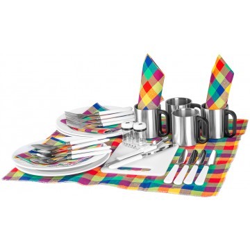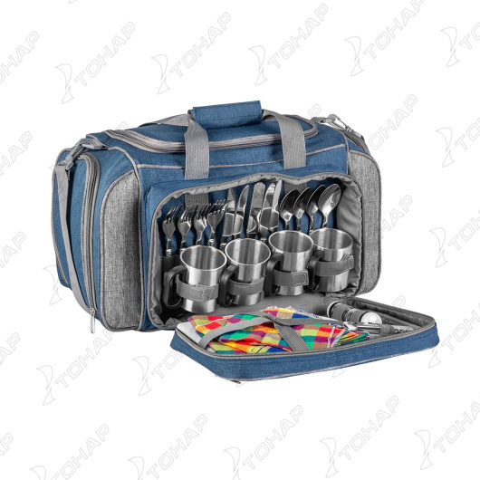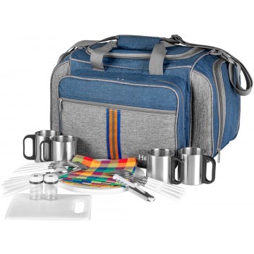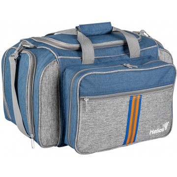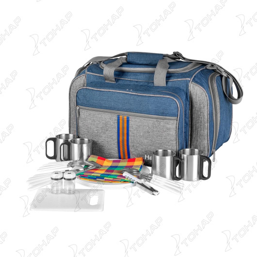 Набор для пикника HS-605(4)G Helios позволит комфортно отдохнуть с друзьями и семьей на природе. Удобная сумка, в которой есть все самое необходимое для отличного пикника на свежем воздухе. Набор на 4 персоны включает: • 4 тарелки • 4 кружки из нержавеющей стали • 4 ложки • 4 вилки • 4 ножа • 1 нож разделочный • 1 солонка • 1 штопор-открывашка • 1 скатерть • 4 салфетки • 1 доска разделочная • большое теплоизолированное основное отделение под продукты Характеристики: • Материал сумки: Полиэстер 600 D (PVC coating) • Основной цвет сумки: серый • Отделка: оранжевый • Размеры: 48х25х28 см • Вес: 2,75 кг