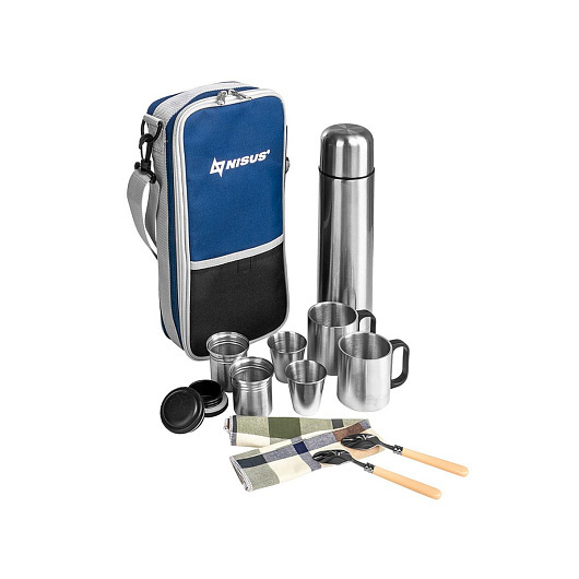 Набор для пикника на 2 персоны (N-270-B (2)) NISUS Удобный и компактный дорожный набор, не займет много места при транспортировке, при этом в нем есть принадлежности для отличного чаепития вдвоем на свежем воздухе. КОМПЛЕКТАЦИЯ • Термос (1л) • Набор для сахара и чая • 2 железные кружки с пластиковыми ручками • 2 чайные ложки, 2 салфетки ХАРАКТЕРИСТИКИ • Материал: Полиэстер 600 D, металл • Размеры: 37х18х8 см • Вес: 1,3 кг
