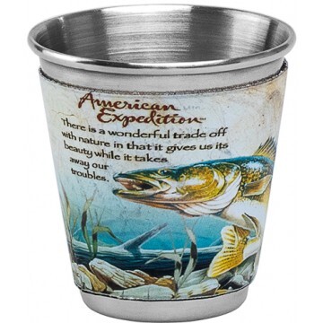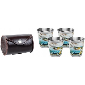 Набор из 4 стопок в кожаном чехле, с рисунком. Характеристики: • Материал стопок – нержавеющая сталь. • Объем - 50мл.
