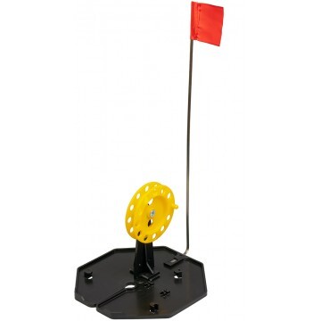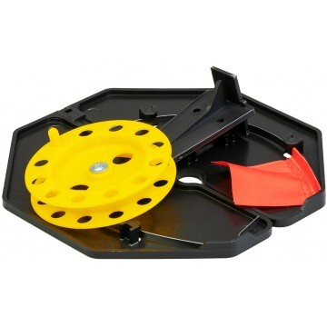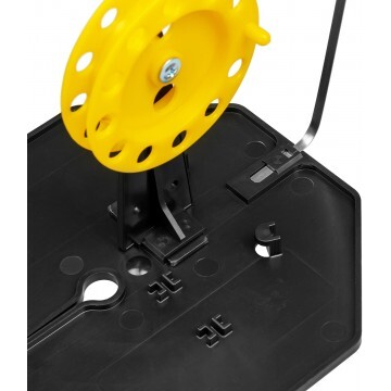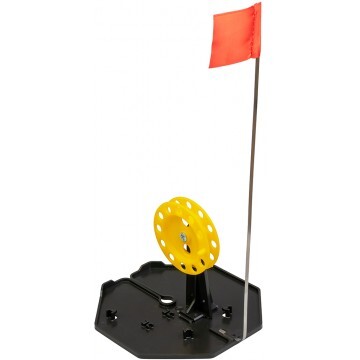 Жерлица зимняя для подледной ловли рыбы состоит из основания, стойки с катушкой и флажка-сигнализатора. Большое и прочное основание жерлицы из морозостойкого полипропилена гарантирует затемнение и защиту лунки от замерзания. Основание выполнено в виде восьмиугольника, что предотвращает проворачивание жерлицы в снегу. На основании находятся: прорезь для завода лески, паз под крепление стойки с катушкой, паз под крепление сигнализатора — флага.