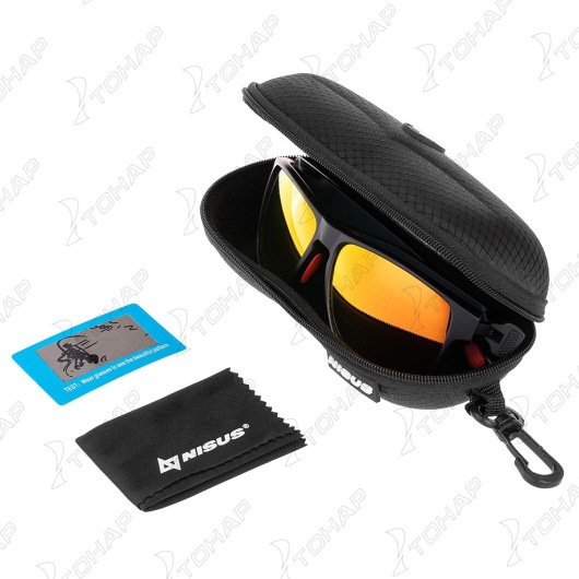 Солнечные поляризационные очки NISUS — отвечают всем требованиям качества: современный эргономичный дизайн, прочные легкие материалы. Линзы с поляризационным фильтром UV 400, задерживают 99-100% ультрафиолета и не пропускают свет с длиной волны до 400 нанометров. Такой тип линз делают вид более четким, а цвета более насыщенными, уменьшают слепящий солнечный свет и блики. Очки с поляризацией просто незаменимы при определенных видах деятельности: вождение автомобиля, рыбалка, катание на лыжах и т.д. Цвет линз: оранжевый. В комплекте: 1 поляризационные очки; 1 жесткий чехол; салфетка; тестер для проверки поляризации очков. Корпус поликарбонат Поляризационные линзы 400 УФ защита Цвет линз: оранжевые Цвет оправы: черный. Утолщенные дужки для дополнительной фиксации. Ширина: 134 мм Длина дужки: 133 мм Носовая перемычка: 18 мм Вес: 27гр