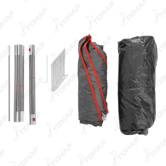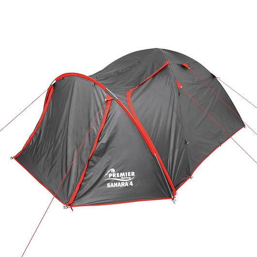 Палатка Sahara 4 “Premier fishing” – 4-местная палатка универсальной серии, которая идеально подойдет для походов и путешествий. Особенности: • Благодаря продуманной до мелочей конструкции палатка быстро собирается. • Прочный каркас выполнен из фибергласа диаметром 9,5 мм. • Палатка – 2-слойная (внутренняя палатка и внешний тент). • Цвет: серый, красный кант Размеры внешнего тента: (130+215) х 250 х 135 см. Тент изготовлен из полиэстера (polyester 190T) и имеет специальную пропитку, которая придает ему прочность и долговечность, а также защищает от выгорания и преждевременного износа. Водоотталкивающее покрытие тента (PU) – 2000мм. Швы тента проклеены. Размер спального отделения (внутренней палатки) 205 х 245 см. Увеличенный тамбур имеет длину 130 см, что позволит разместить рюкзак и необходимое снаряжение. Материал внутренней палатки - дышащий полиэстер (breathable polyester 180T), который обладает высоким значением воздухопроницаемости. Палатка имеет 3 входа. Входы внутренней палатки и вентиляционные отверстия дополнительно закрыты антимоскитной сеткой. Внутренние карманы под различные мелочи. Пол выполнен из армированного водонепроницаемого терпаулинга (PU 10000 мм). Боковые оттяжки обеспечат палатке дополнительную устойчивость и защитят от сильных порывов ветра (8 штук). Колышки – 24 штуки. Вес палатки – 5,5 кг. Размер в транспортном чехле - 17х17х65см.